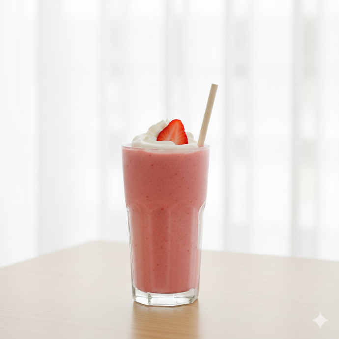 مزيج من الفراولة الطازجة واللبن والثلج المجروش