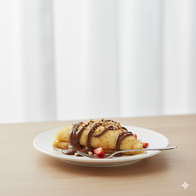 كريب محشو بنوتيلا ومزين بالموز وصوص الشوكولا